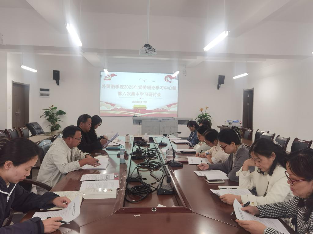 9月25日,我院2025年党委理论学习中心组第六次集中学习会在云漫湖校区会议室召开,学院领导班子成员、副科级以上干部、各党支部书记、语言实验中心及各教研室负责人参加,会议由学院党委书记、院长付启宏主持。会议主要围绕“习近平总书记近期重要讲话、重要指示、重要回信精神和《习近平谈治国理政》第五卷,深入学习习近平总书记在中央政治局第二十一次集体学习时的重要讲话、在山西考察时的重要讲话精神,全面准确理解把握习...