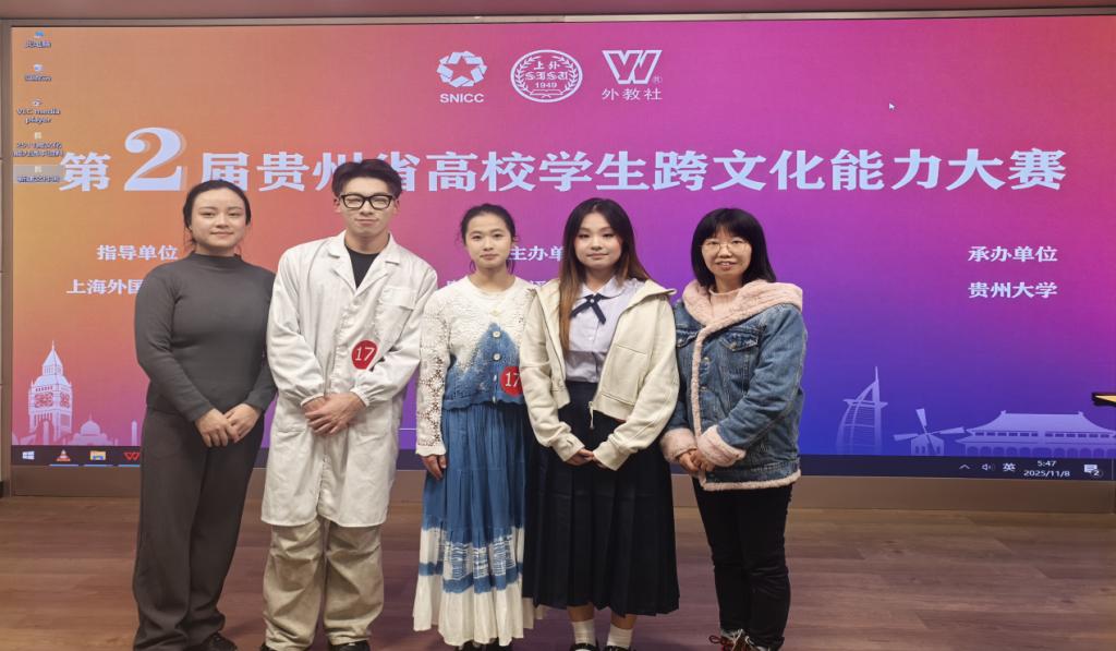 为推动中外人文交流,践行 “以我为主、兼收并蓄” 理念,加强我国国际传播能力建设,讲好中国故事、传播好中国声音,展现真实、立体、全面的中国,11月8日,第二届贵州省高校学生跨文化能力大赛暨第二届“外教社杯”全国高校学生跨文化能力大赛贵州赛区比赛圆满落幕。该赛事由贵州省大学外语教学指导委员会、贵州省外语类专业教学指导委员会联合上海外语教育出版社主办,贵州大学承办。本次大赛以“坚定文化自信 增进国际理解...